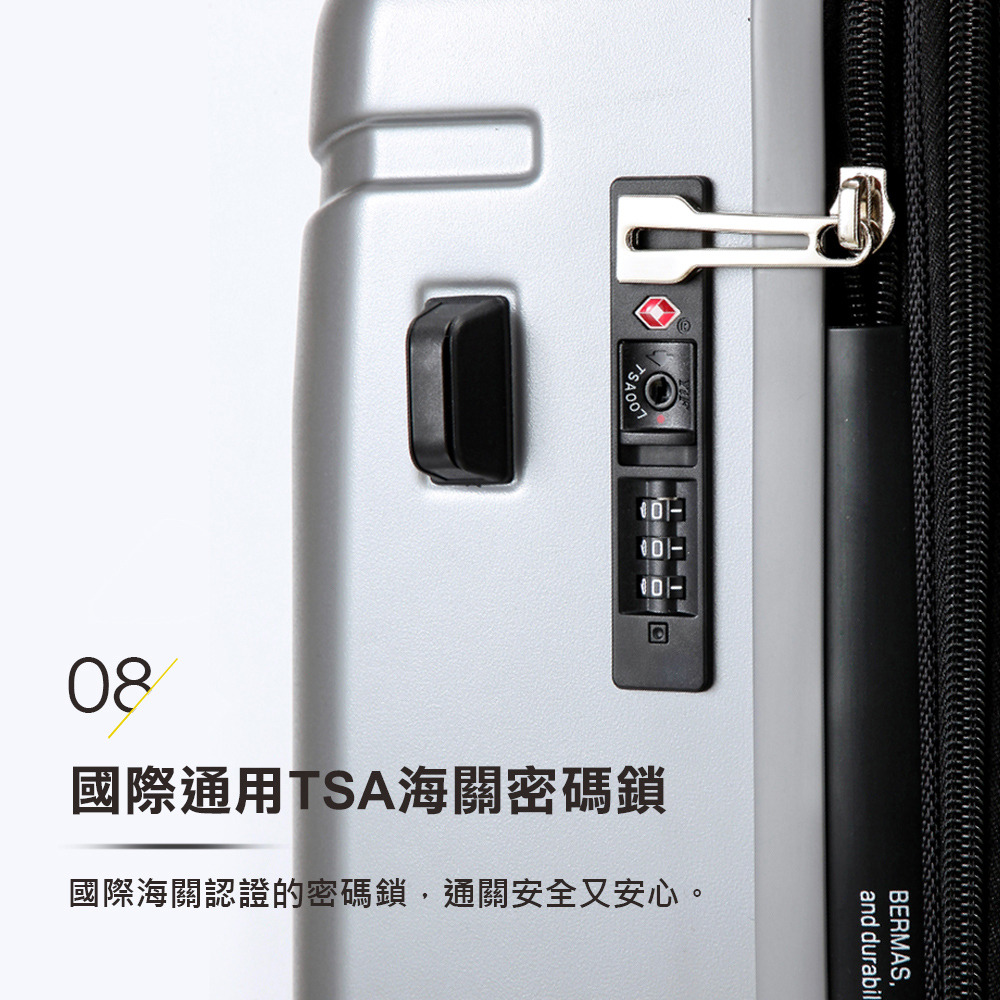 ‧國際認證TSA海關密碼鎖,通關安全又安心。